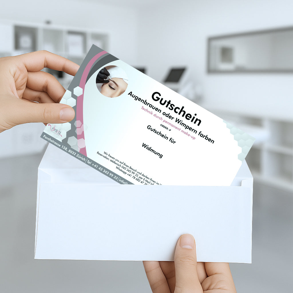 - Vorzeigen: Gutschein bei Ankunft im Studio vorlegen.