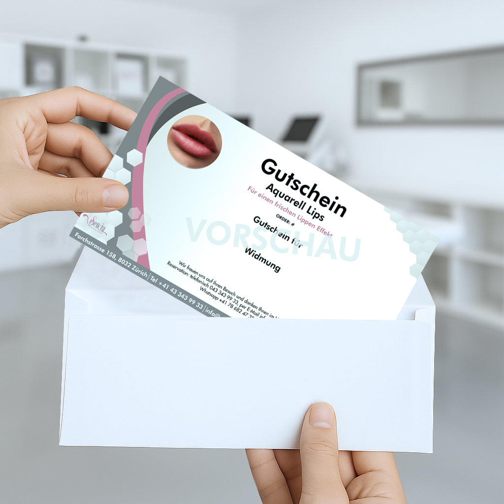 - Vorzeigen: Gutschein bei Ankunft im Studio vorlegen.