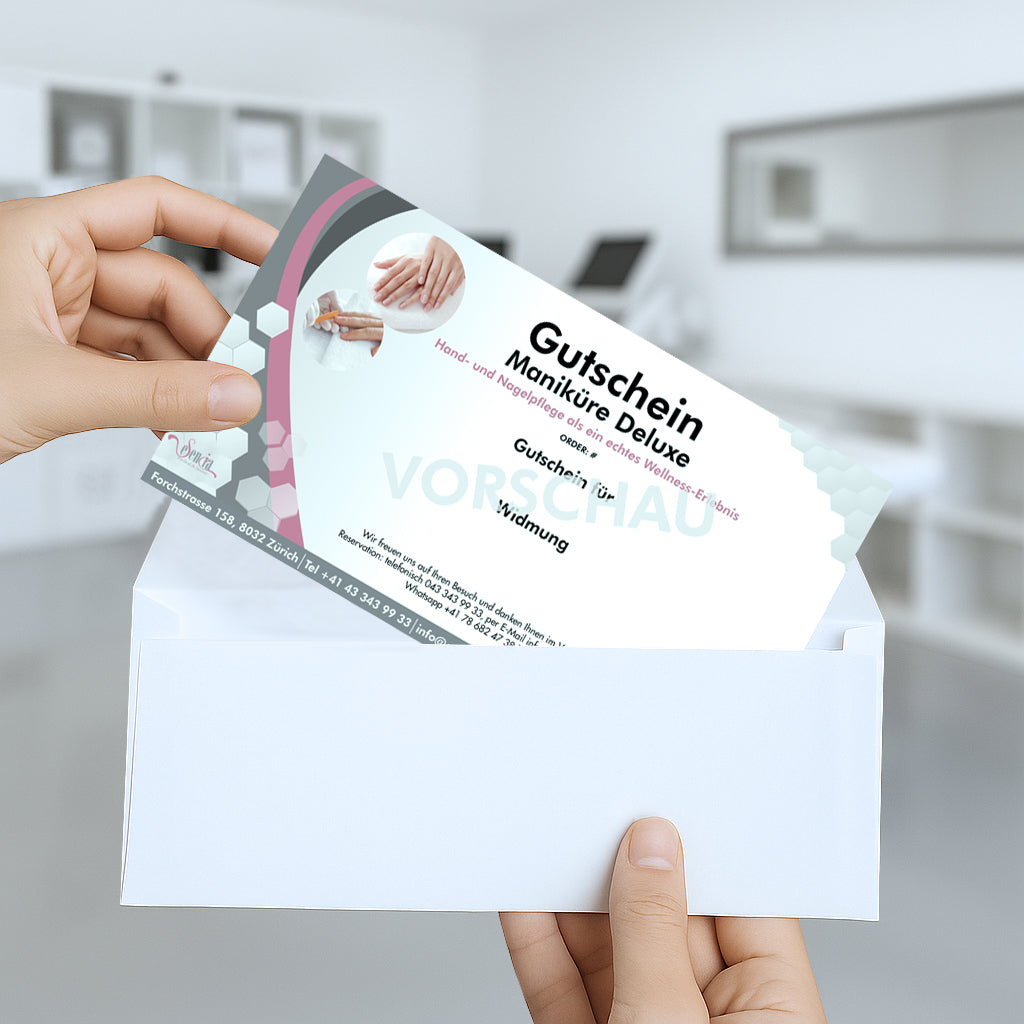 - Vorzeigen: Gutschein bei Ankunft im Studio vorlegen.